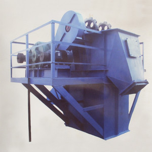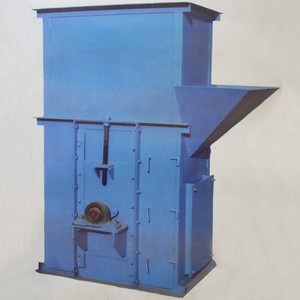 料斗把物料從下面的儲藏中舀起,隨著輸送帶或鏈提升到頂部,繞過頂輪后向下翻轉,斗式提升機將物料傾入接受槽內。帶傳動的斗式提升機的傳動帶一般采用橡膠帶,裝在下或上面的傳動滾筒和上下面的改向滾筒上。鏈傳動的斗式提升機一般裝有兩條平行的傳動鏈,上或下面有一對傳動鏈輪,下或上面是一對改向鏈輪。斗式提升機一般都裝有機殼,以防止斗式提升機中粉塵飛揚。